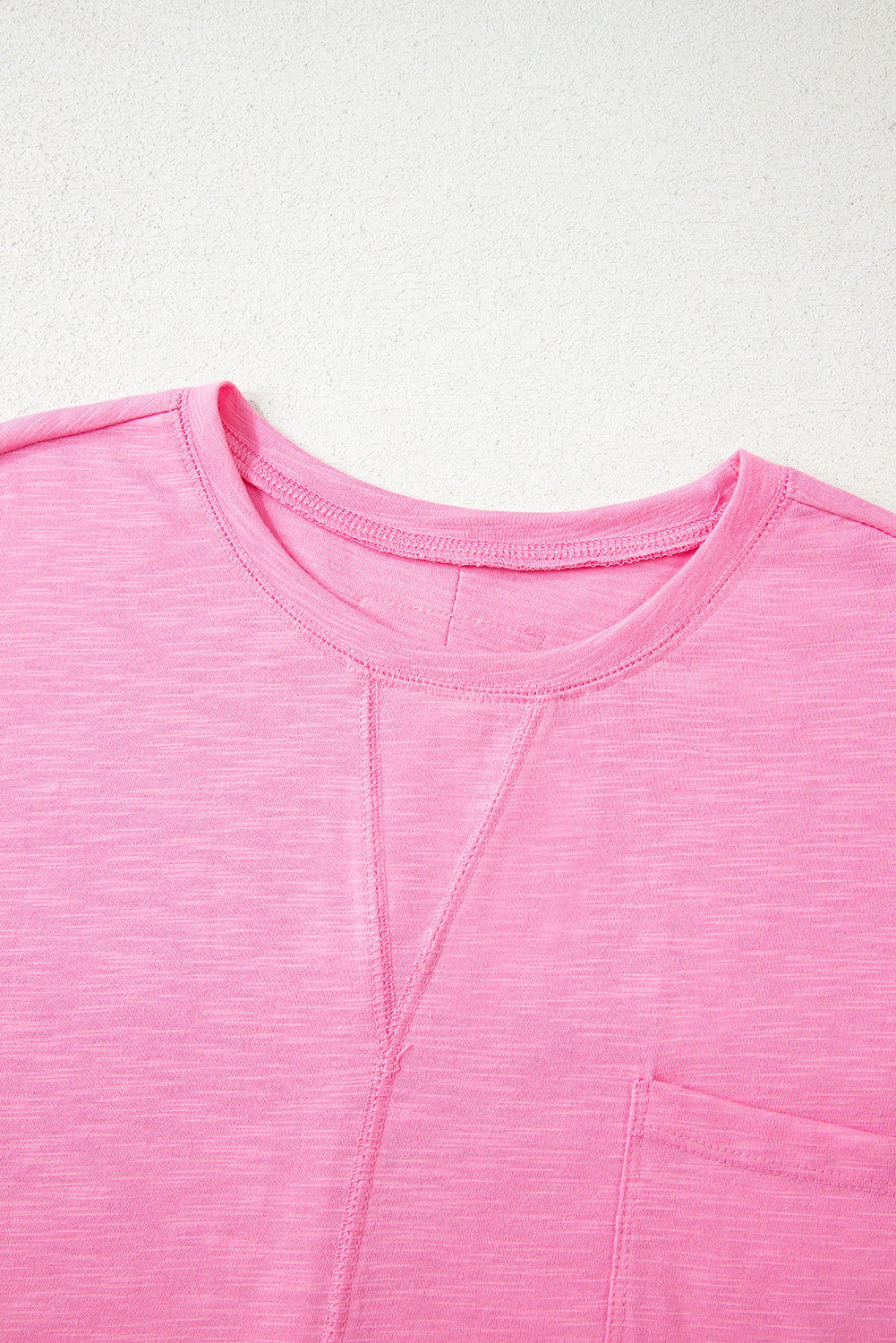 Loose tee with chest pocket, half sleeves and exposed seam detail.